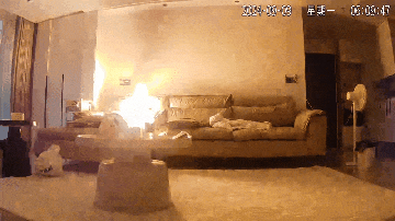 沙發(fā)突然出現(xiàn)大量火花,僅3秒呈爆炸性燃燒狀態(tài),火花點(diǎn)燃沙發(fā)后,火勢迅速擴(kuò)大蔓延。