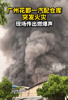 據廣州消防消息,9月13日,廣東廣州花都區一汽配倉庫發生火災。