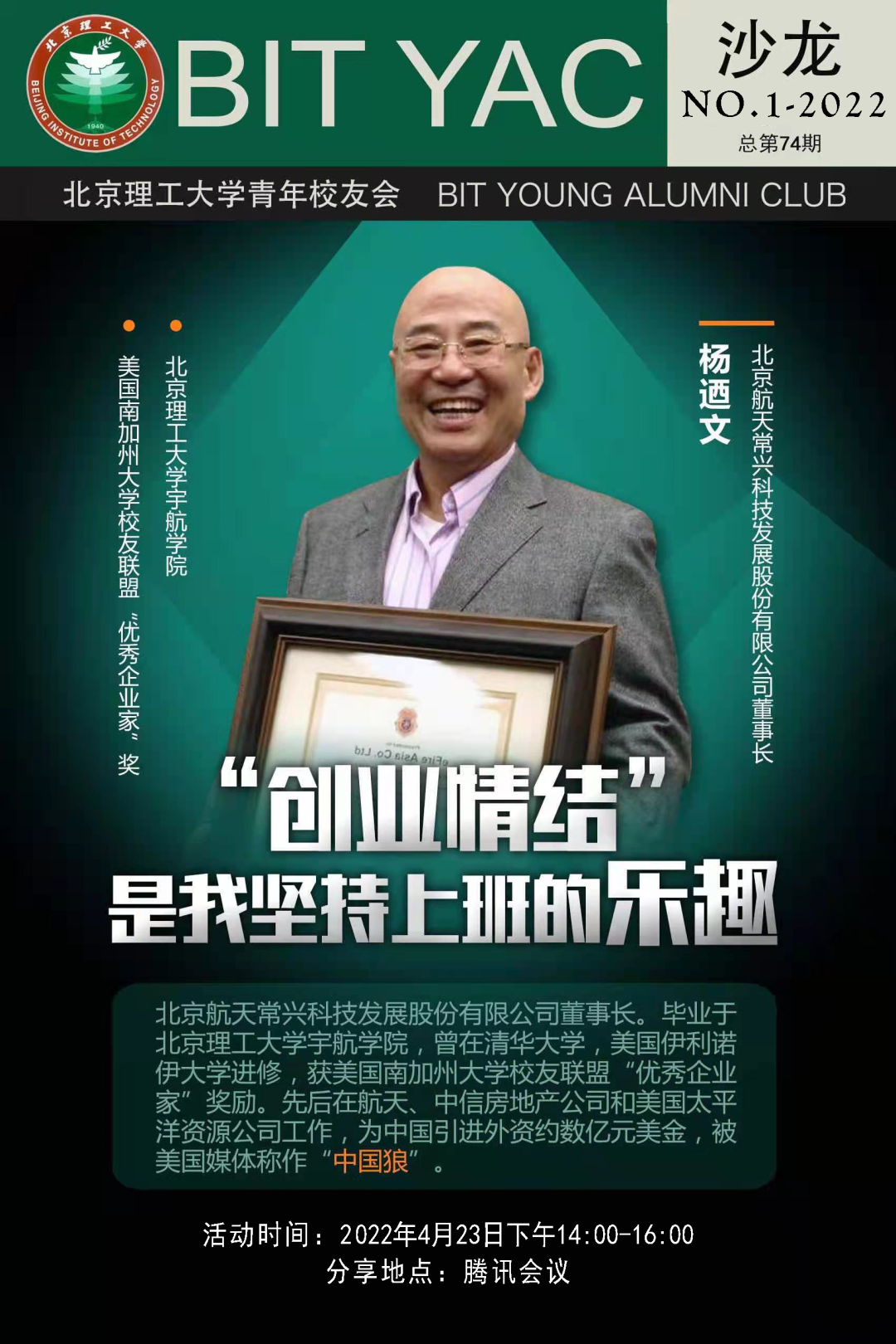 2022年4月23日下午,受疫情影響闊別已久的青年匯校友沙龍再度開啟。本期邀請63級導彈總體專業楊迺文校友帶來“‘創業情結’是我堅持上班的樂趣”主題分享,40多位北理工校友在騰訊會議上“云相聚”。