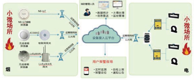 探測到火情后,通過探測器、平臺、用戶手機端、短信、語音電話、人工電話立體報警,并將報警、故障等信息同時推送給用戶、消防監督員、社區網格員、物業管理人員、微型消防站等消防安全責任主體。